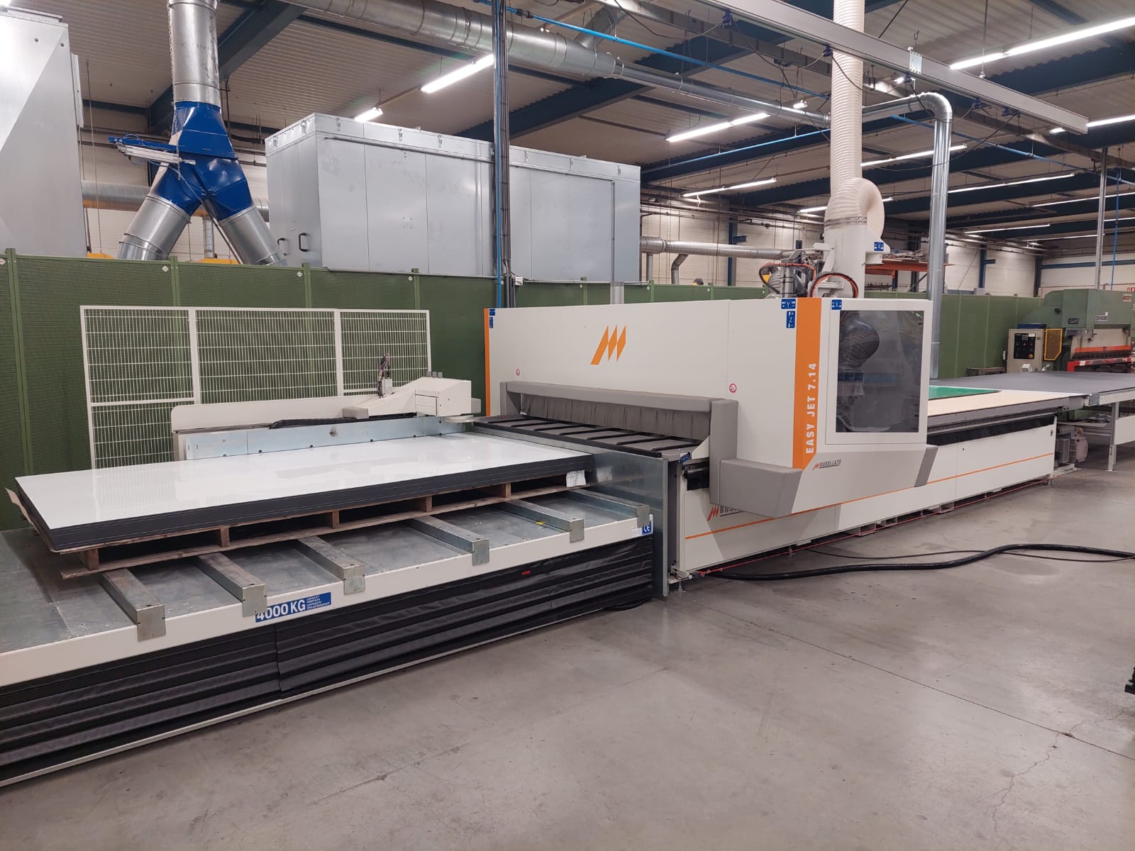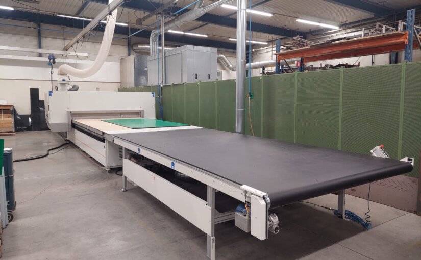 De Busellato Easy Jet 7.14 heeft een werkveld van 4.286 (X) x 2.155 (Y) x 100 (Z). Ook is deze zeer complete machine voorzien onder andere van automatische lengtecontrole gereedschap, automatisch smeersysteem, drukrollen en gestuurde vacuümzones.
