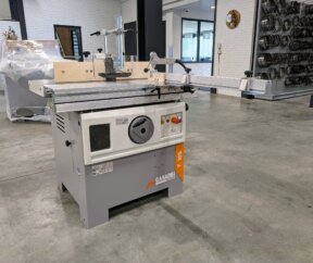 Solide tafelfreesmachine met tafelverlenging links- en rechts, met uittrekbare steun voorzijde. Machine handmatig instelbaar, mechanisch digitaal afleesbaar. Inclusief elektrische voorbereiding voor het doorvoerapparaat. Prijs af Staphorst.