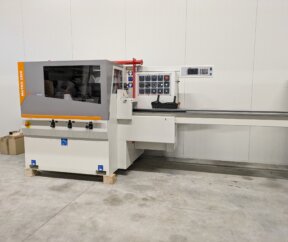 Rijk uitgeruste vierzijdige schaafmachine met 4 schaafassen. De assen zijn te positioneren vanaf het bedieningspaneel aan de voorzijde van de machine. De machine geschikt voor het vierzijdig schaven en profileren van hout.