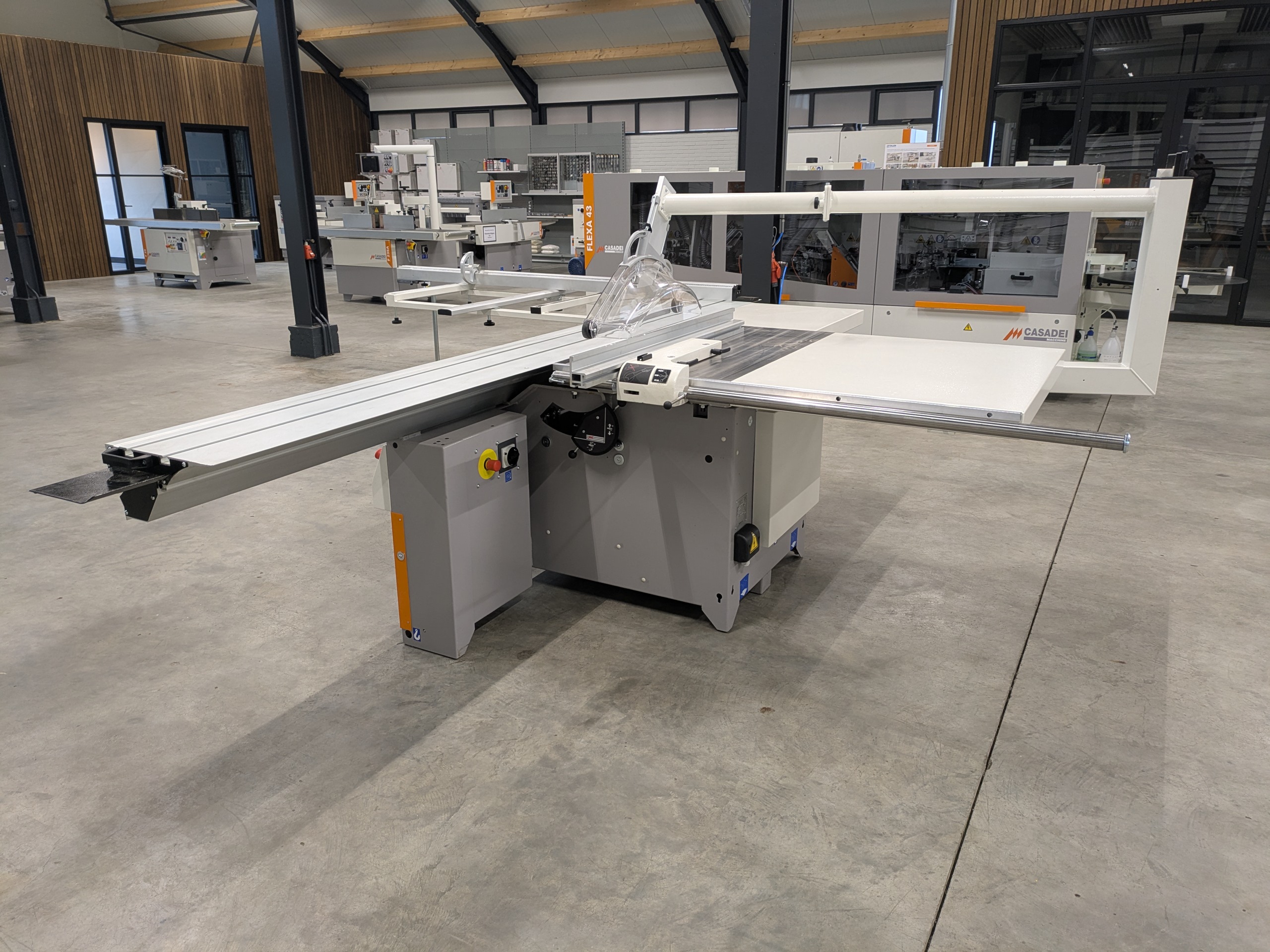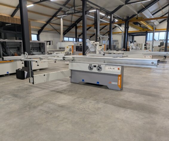 Deze machine is handmatig verstelbaar in de hoogte en schuinte. Prijs is gebruiksklaar, met snoer, stekker en zaagbladen, af Staphorst.