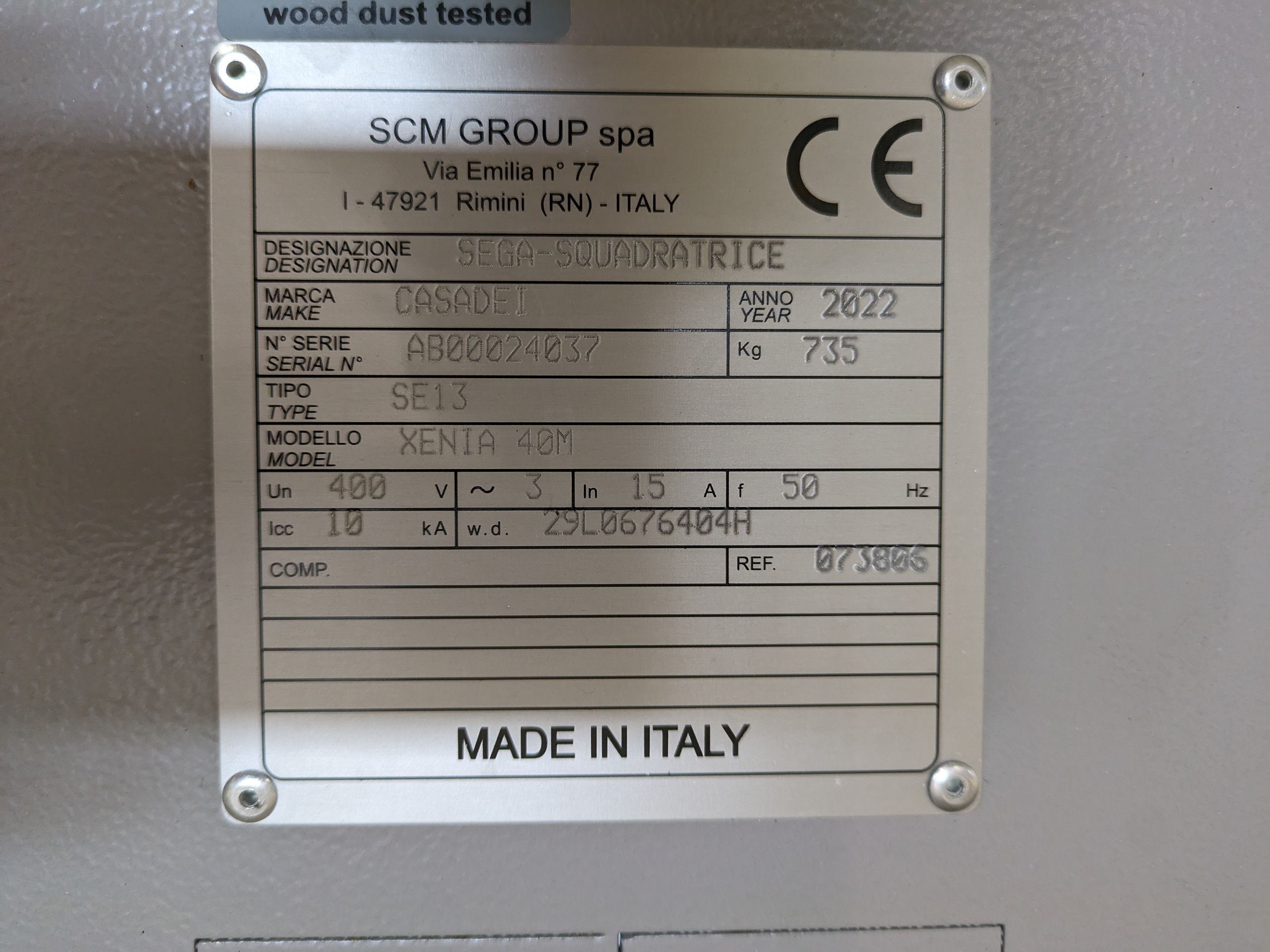• Na het versturen van uw aanvraag nemen wij contact met u op over de Formaatzaagmachine Casadei Xenia 40 M
