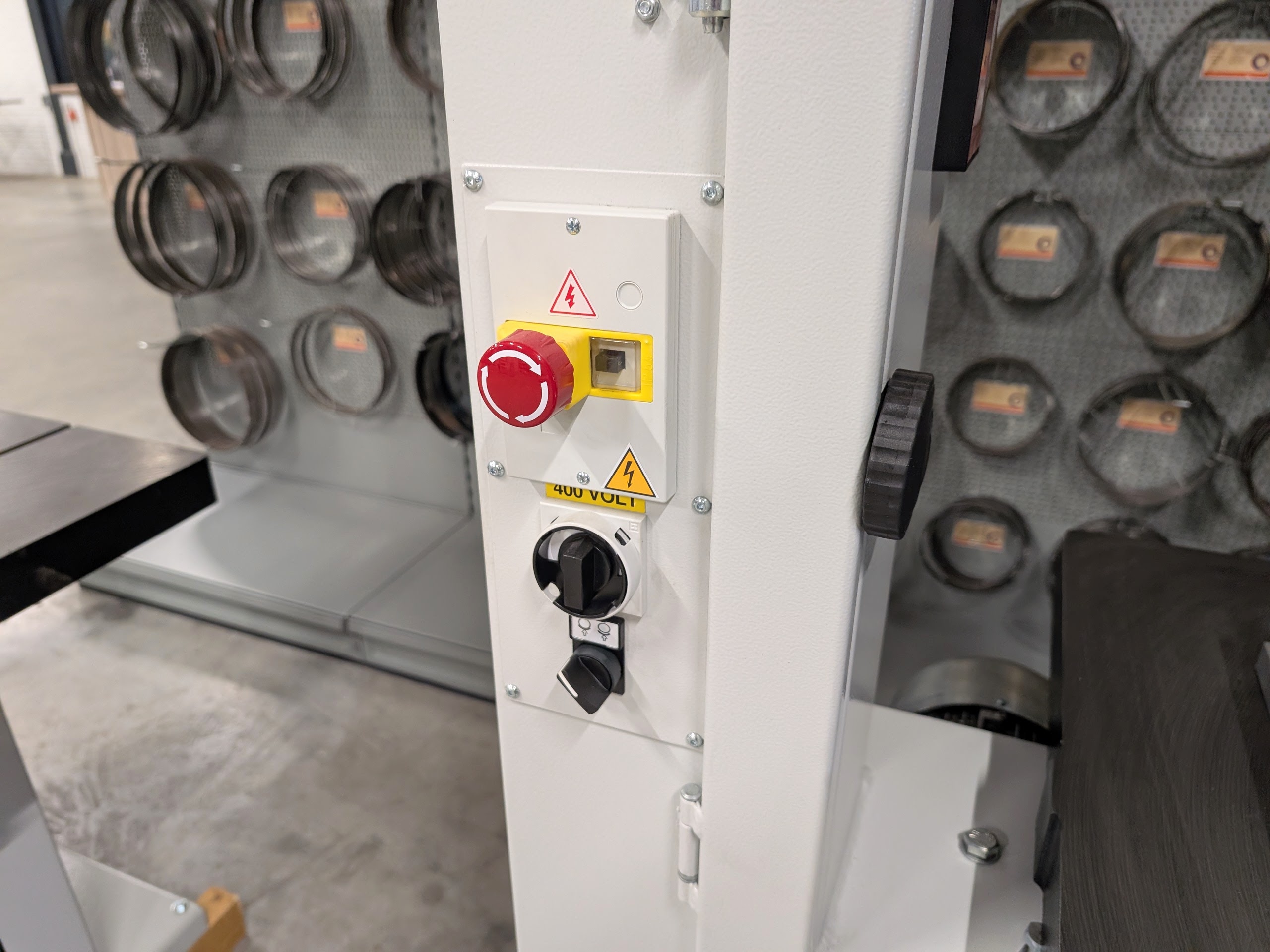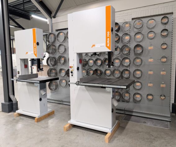 Lintzaag uit de Aura serie van Casadei. Deze machines zijn voorzien van gietijzeren wielen en stevige constructie. De wielen hebben een diameter van 700 mm. Prijs is af Staphorst.