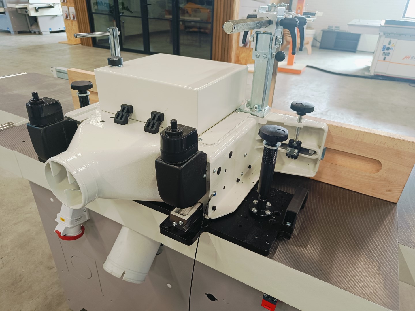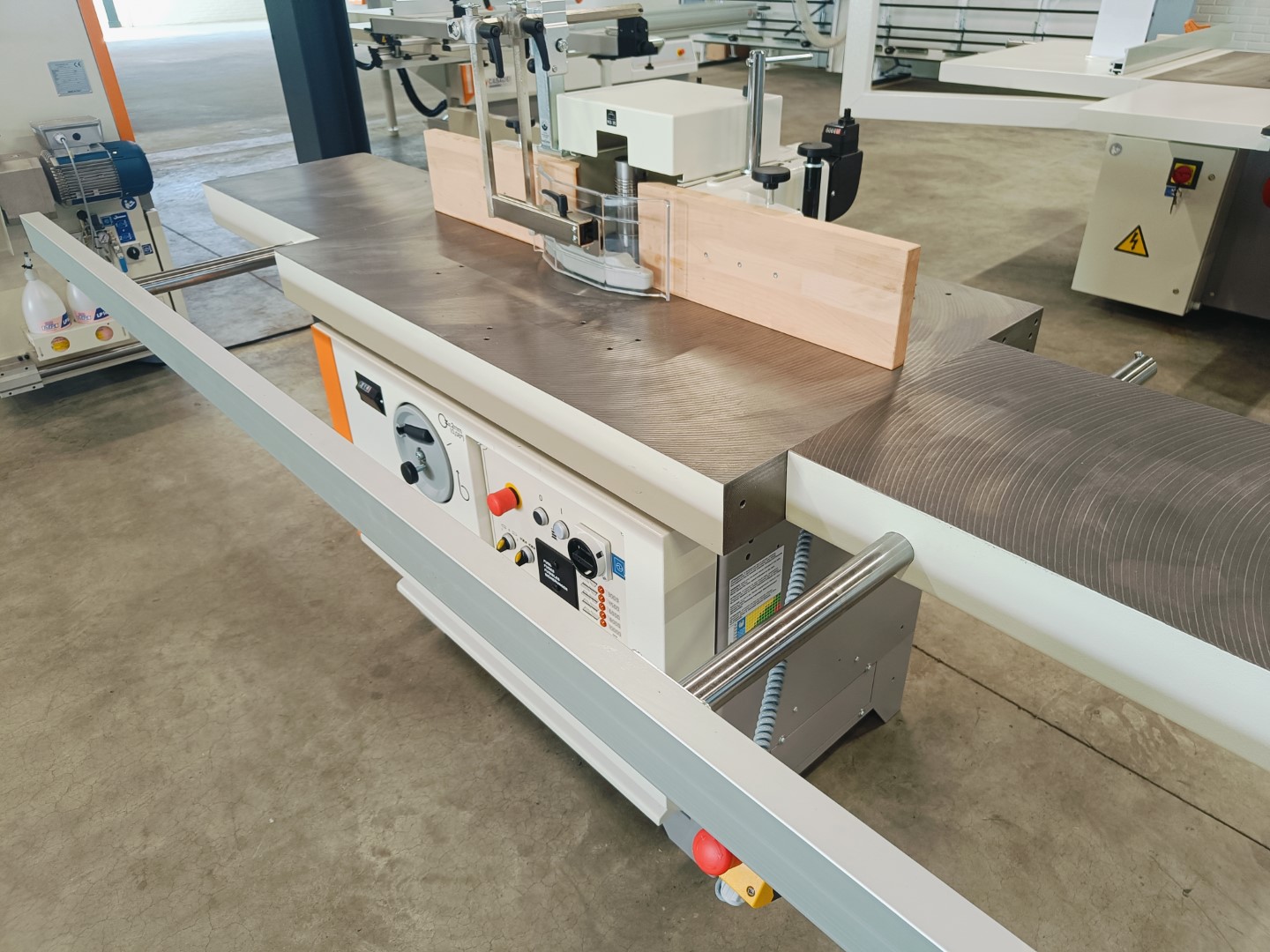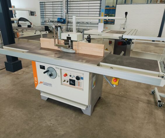 Solide tafelfreesmachine met tafelverlenging links- en rechts, met uittrekbare steun voorzijde. Machine handmatig instelbaar, mechanisch digitaal afleesbaar. Inclusief elektrische voorbereiding voor het doorvoerapparaat. Prijs af Staphorst.