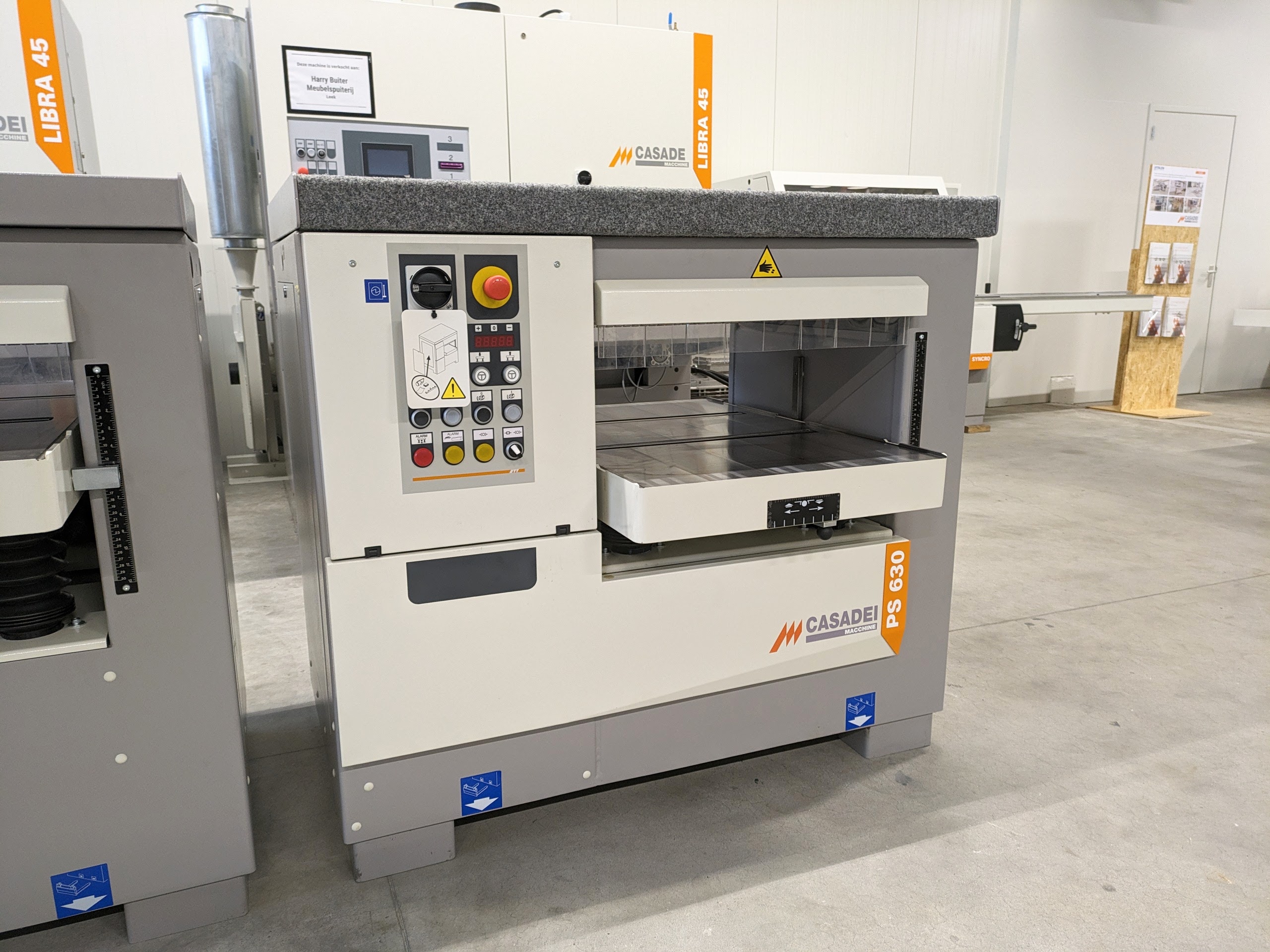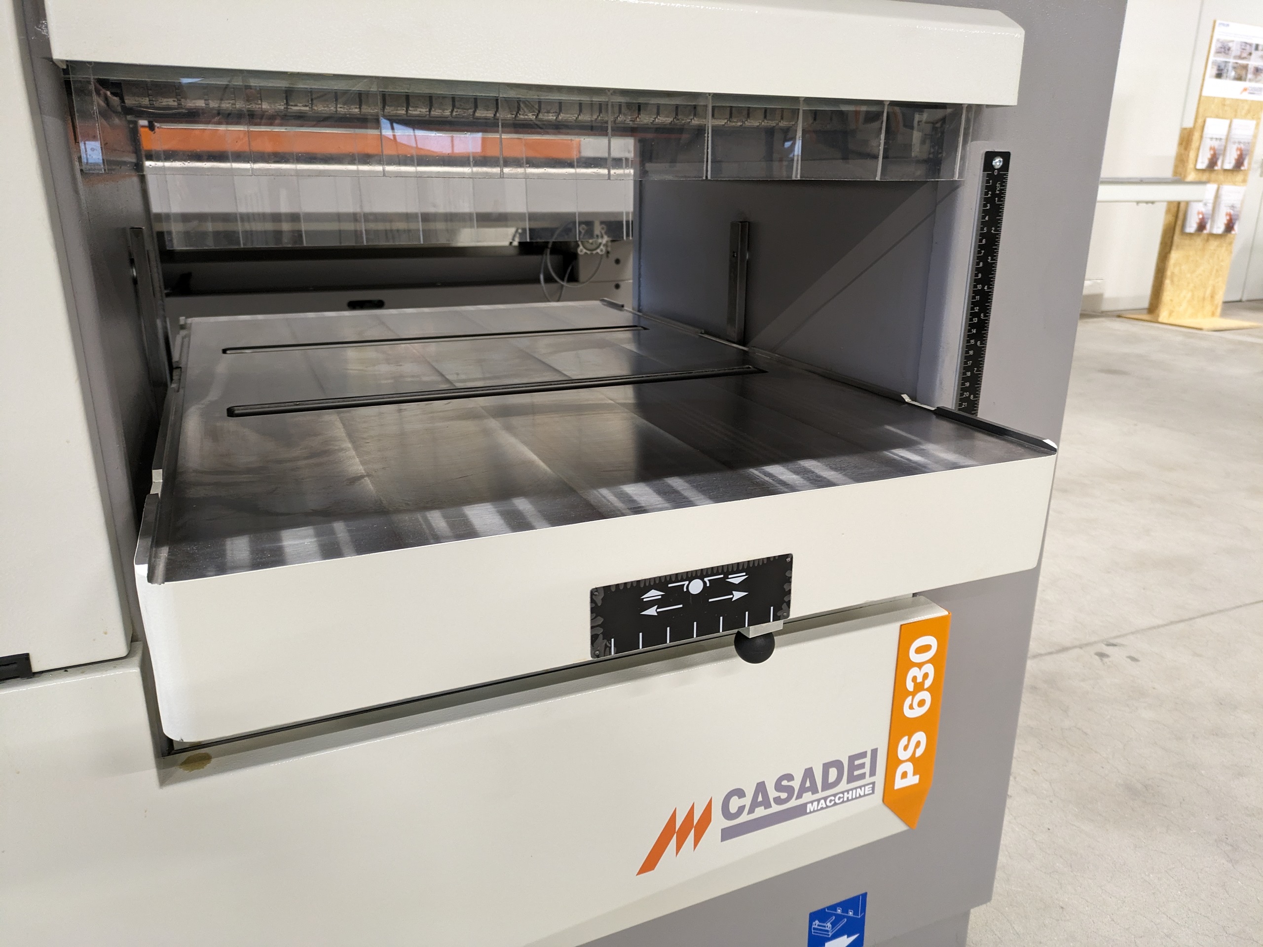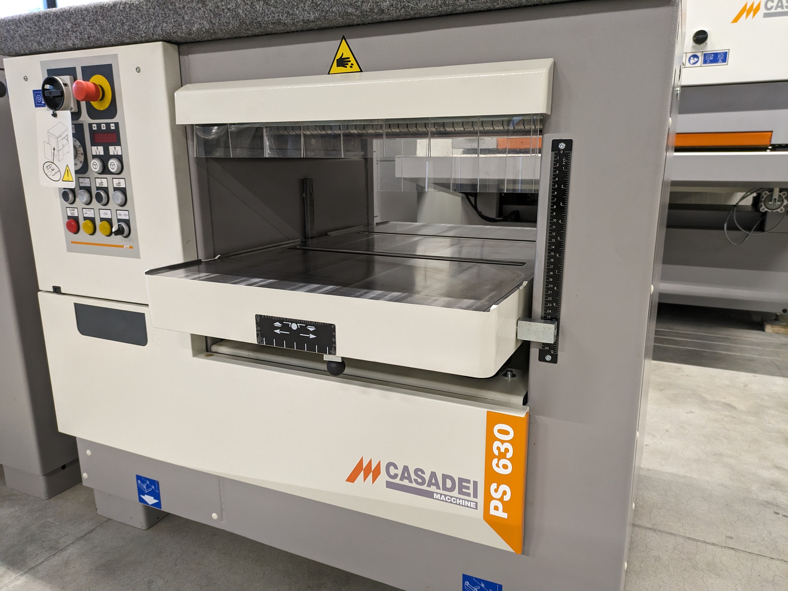 Een robuuste, zeer complete vandiktebank. De PS 630 heeft een variabele doorvoersnelheid van 4 tot 20 m/min. De maximale werkhoogte is 300 mm en de maximale werkbreedte 630 mm.
