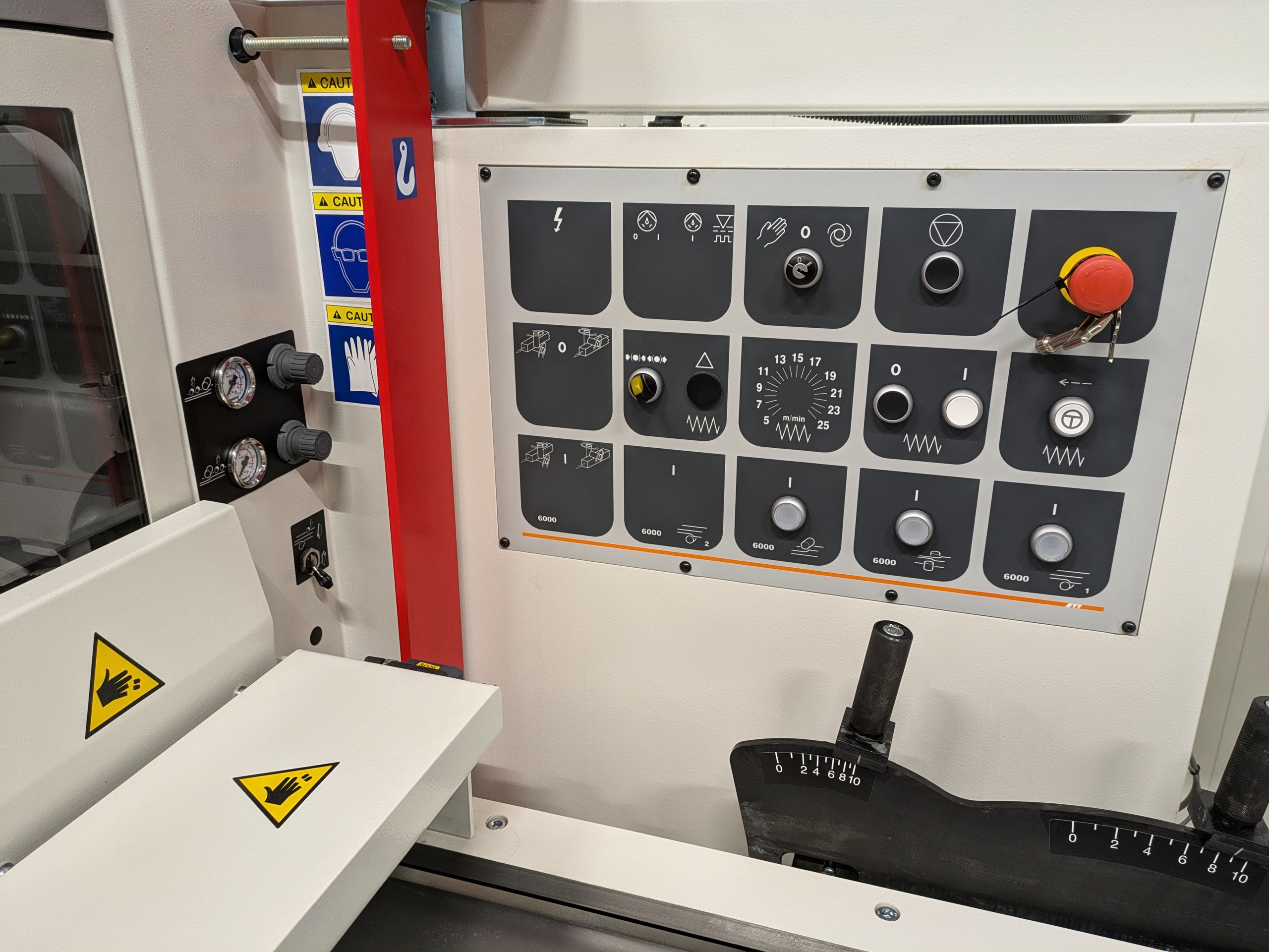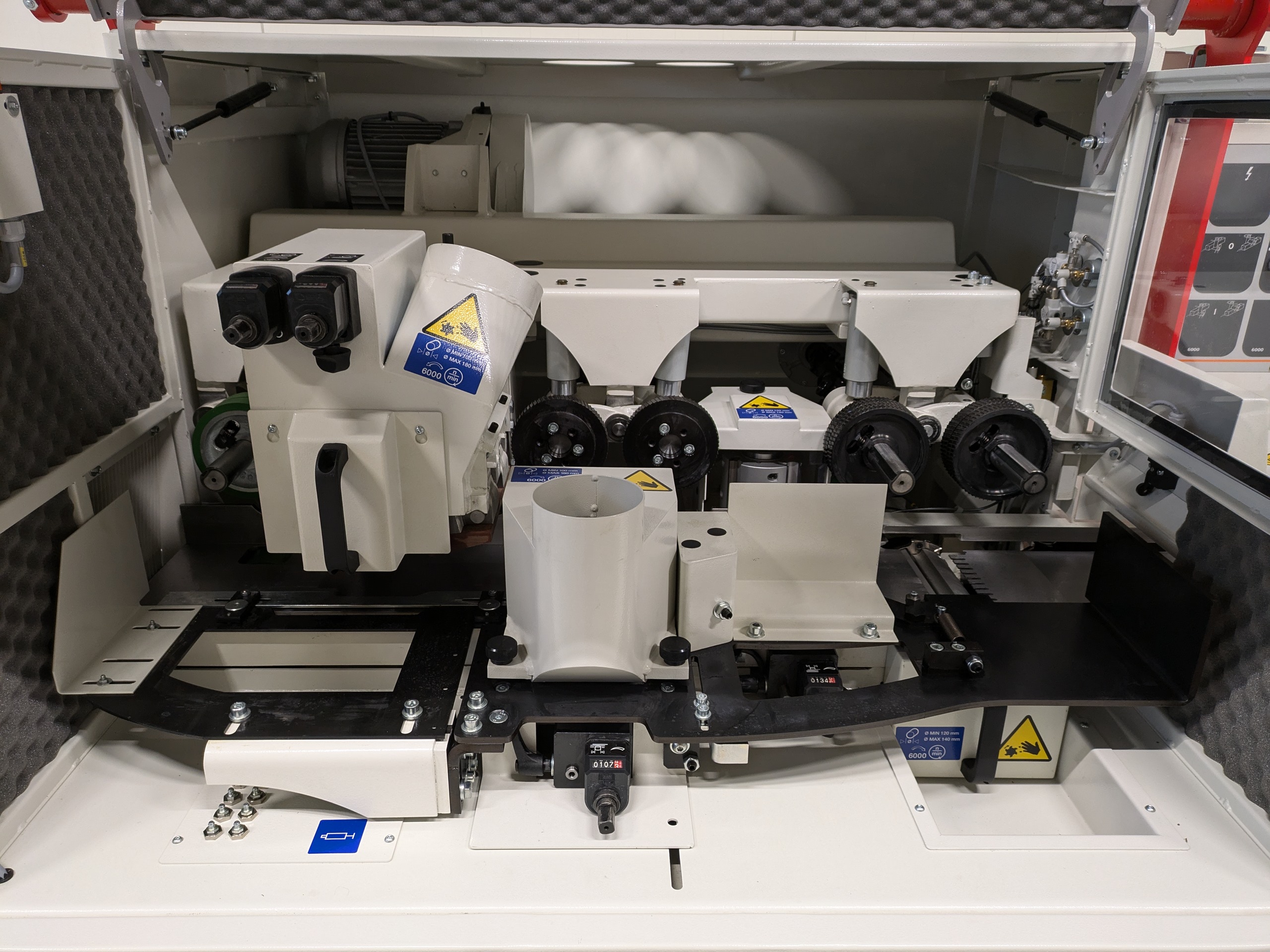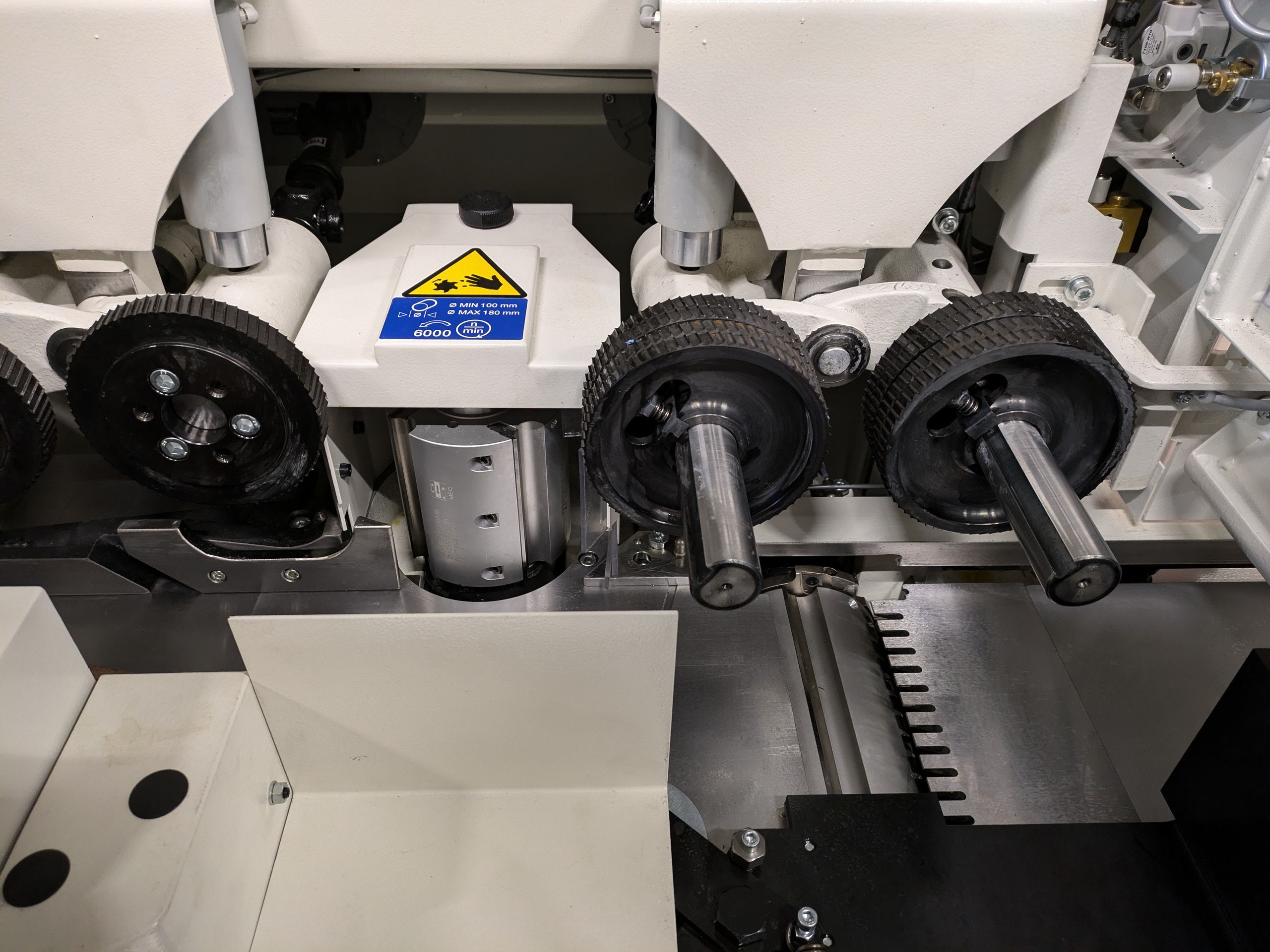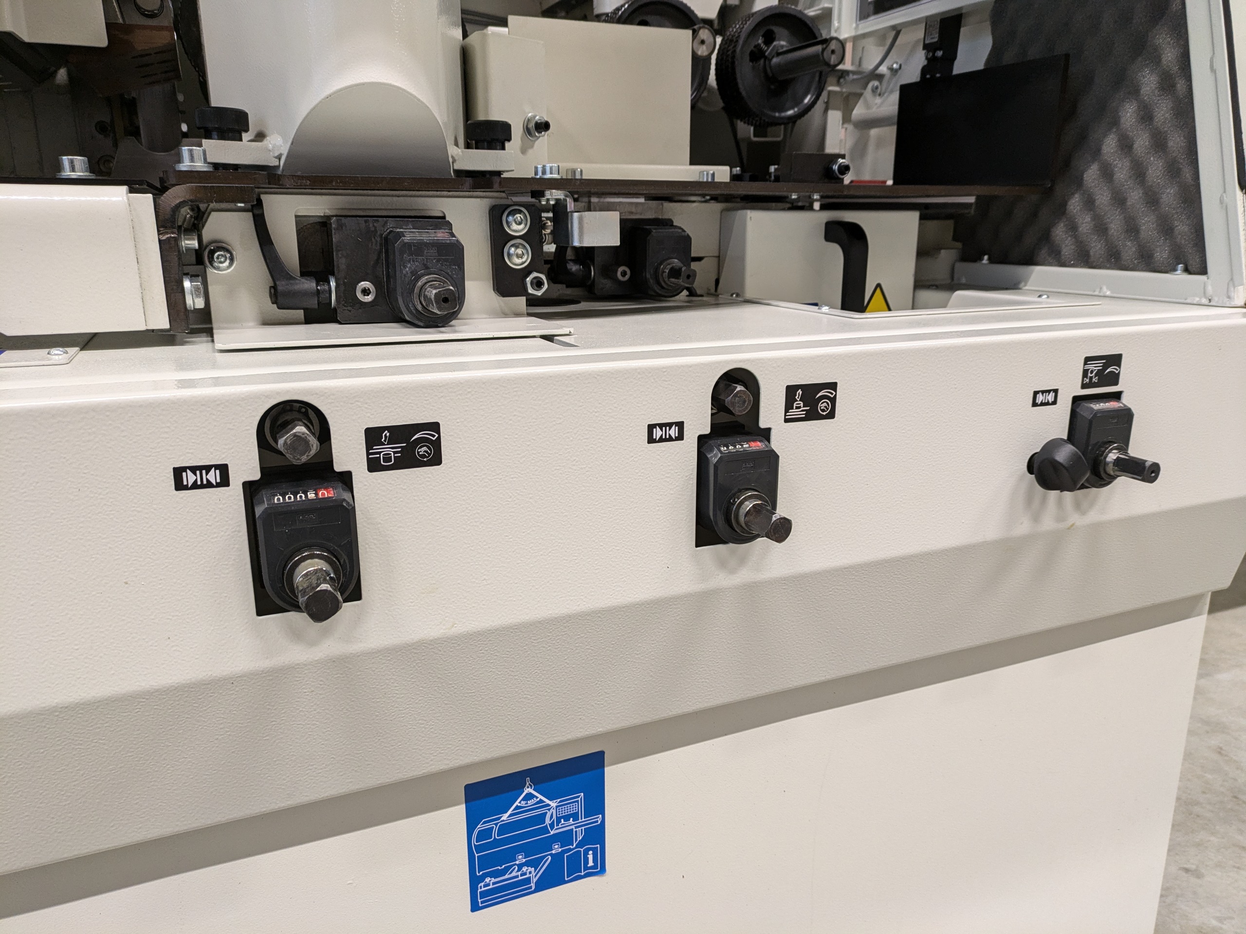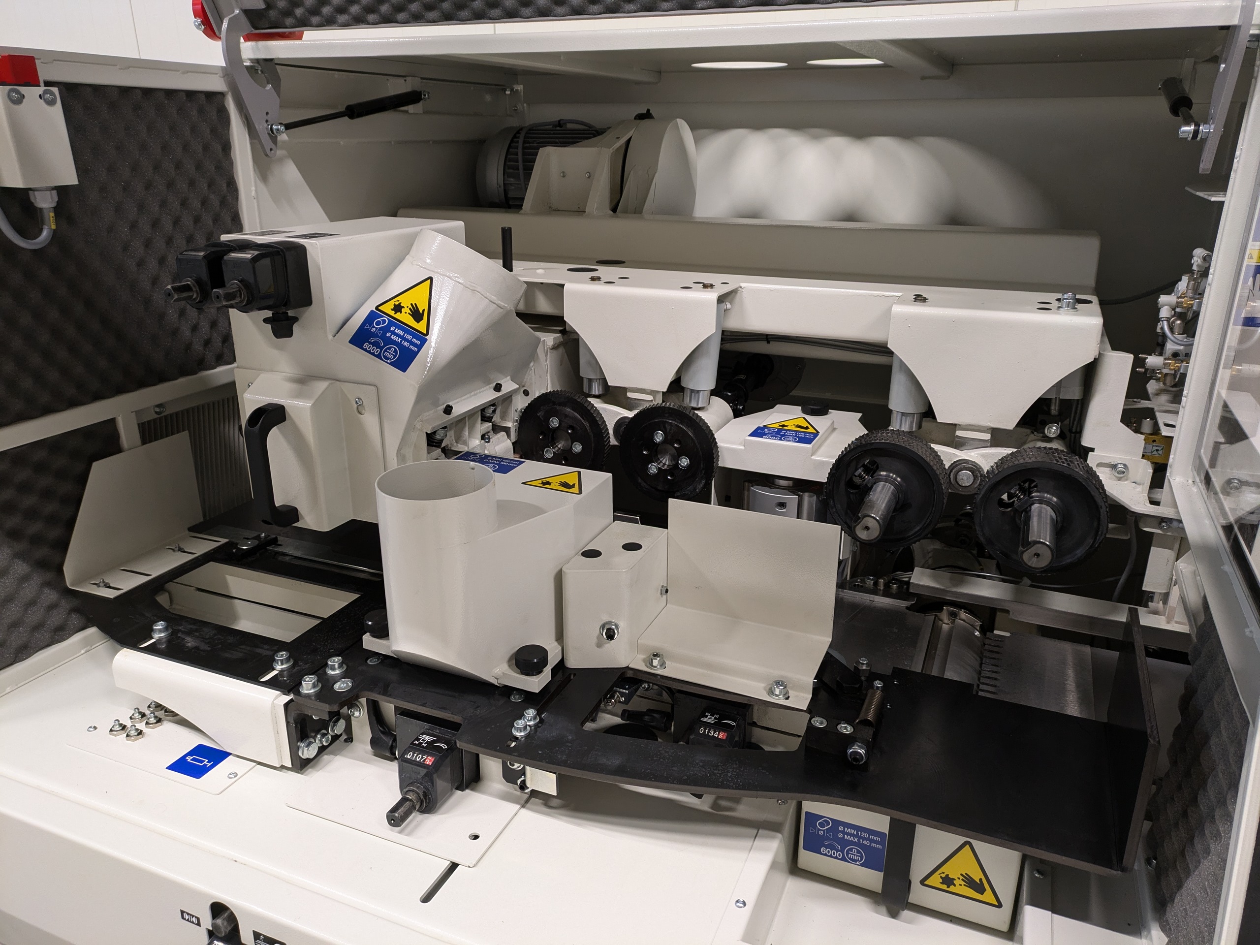 Rijk uitgeruste vierzijdige schaafmachine met 4 schaafassen. De assen zijn te positioneren vanaf het bedieningspaneel aan de voorzijde van de machine. De machine geschikt voor het vierzijdig schaven en profileren van hout.