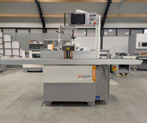 Tafelfreesmachine met digitaal besturingspaneel, voorzien van tafelverleningingen en gestuurde freesgeleider.